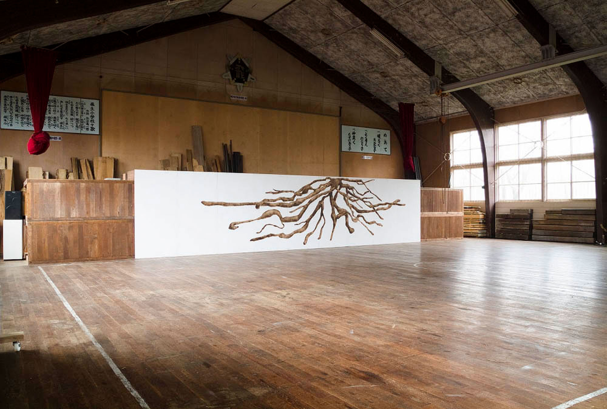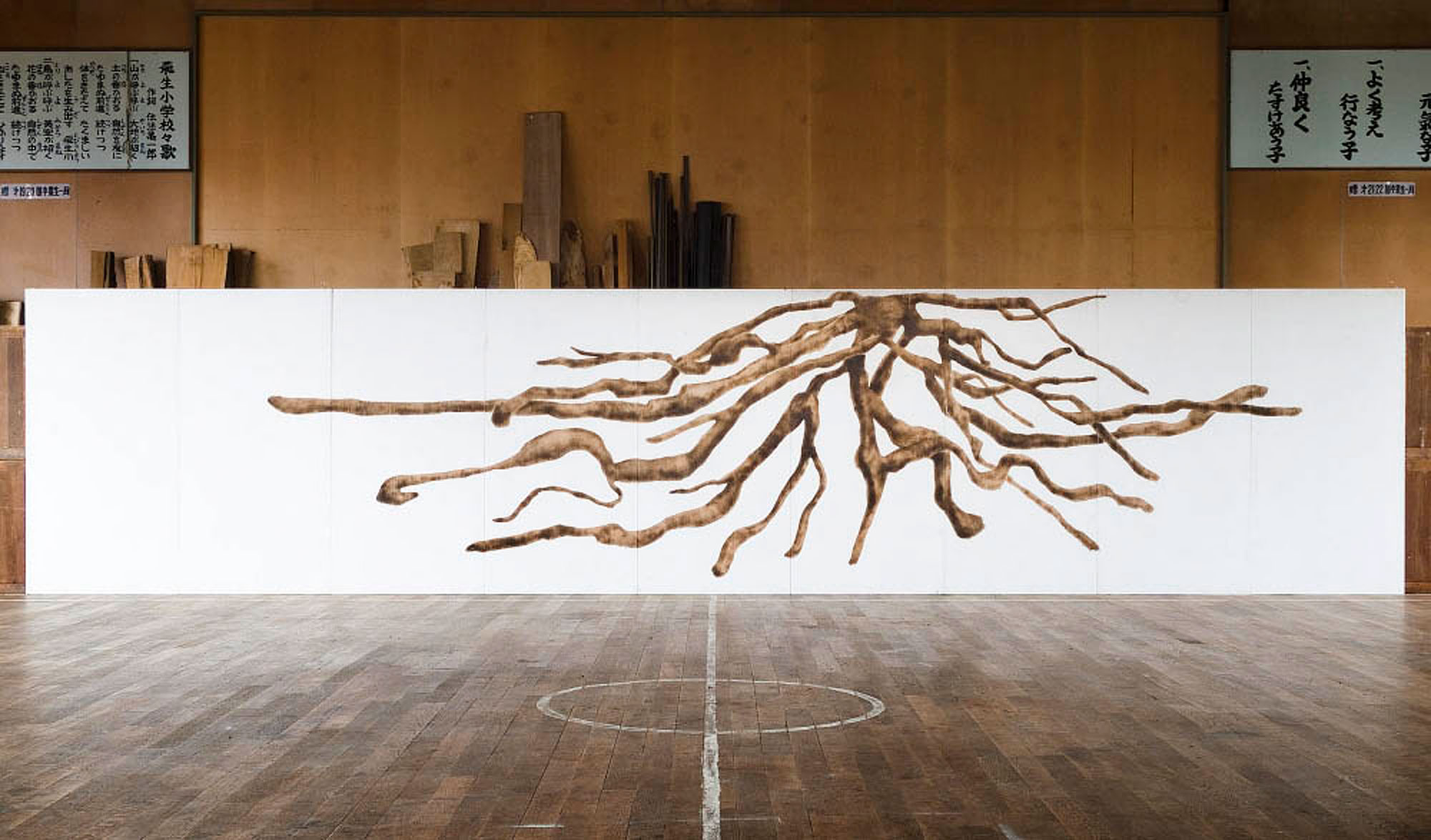 Acrylic on wood board/Iron 180×8100cm Collection of the artist Photo: Kai Takihara