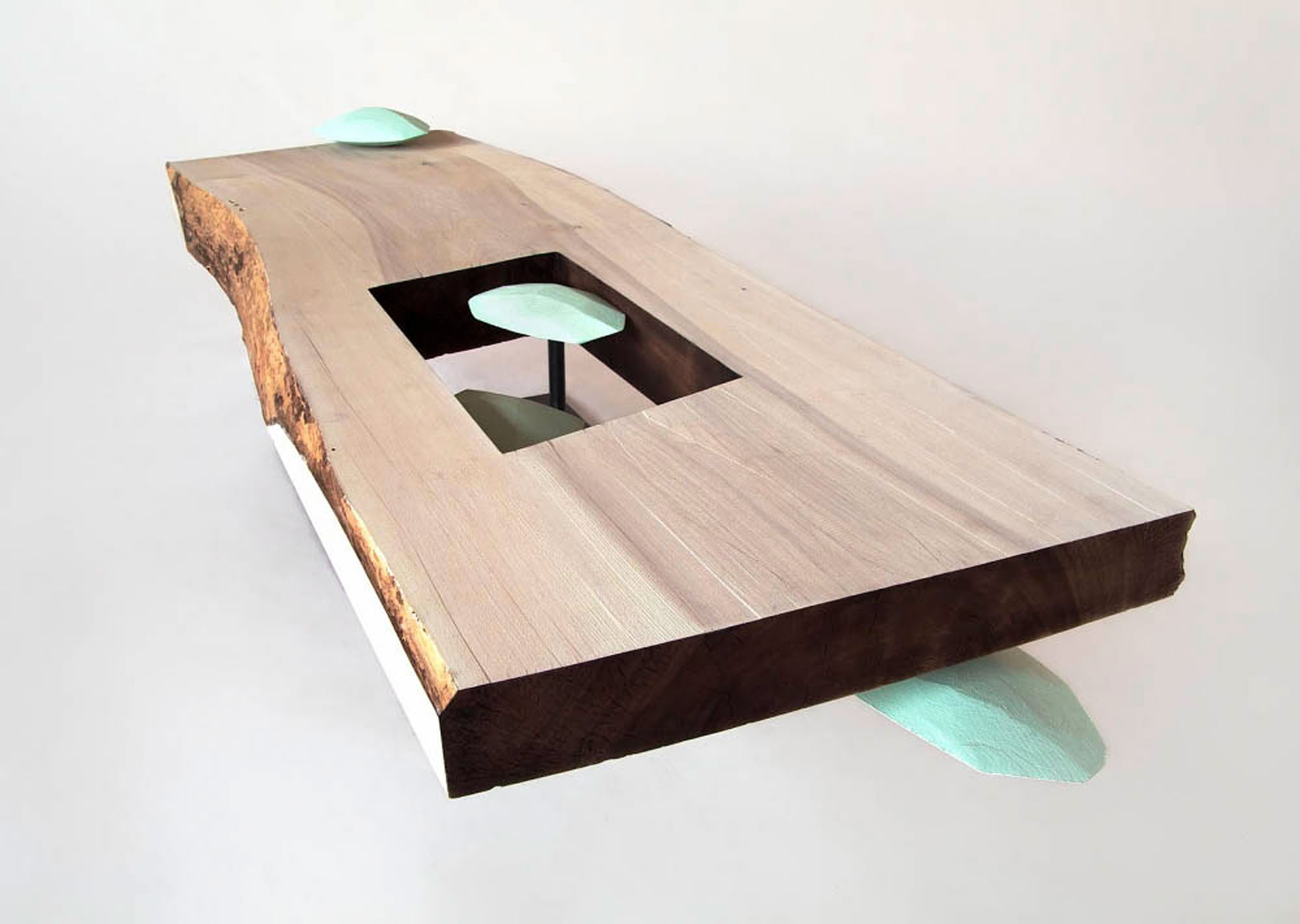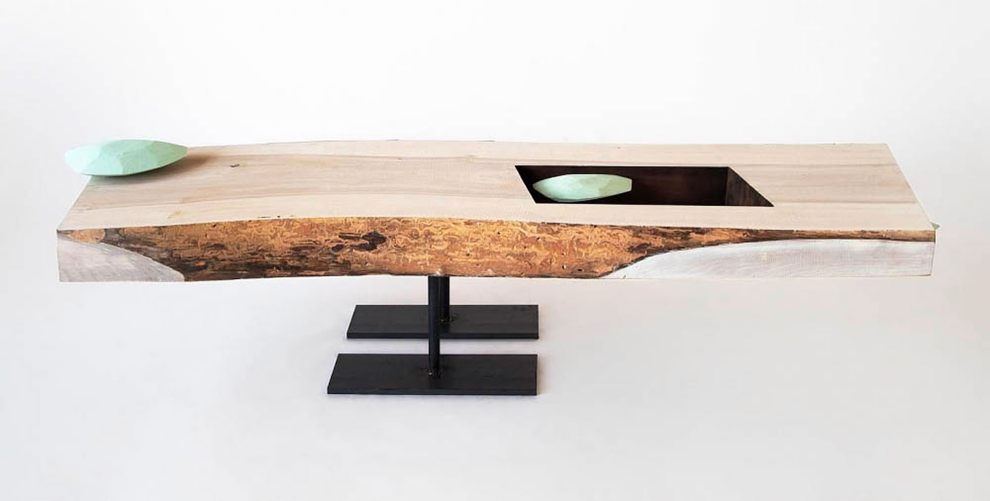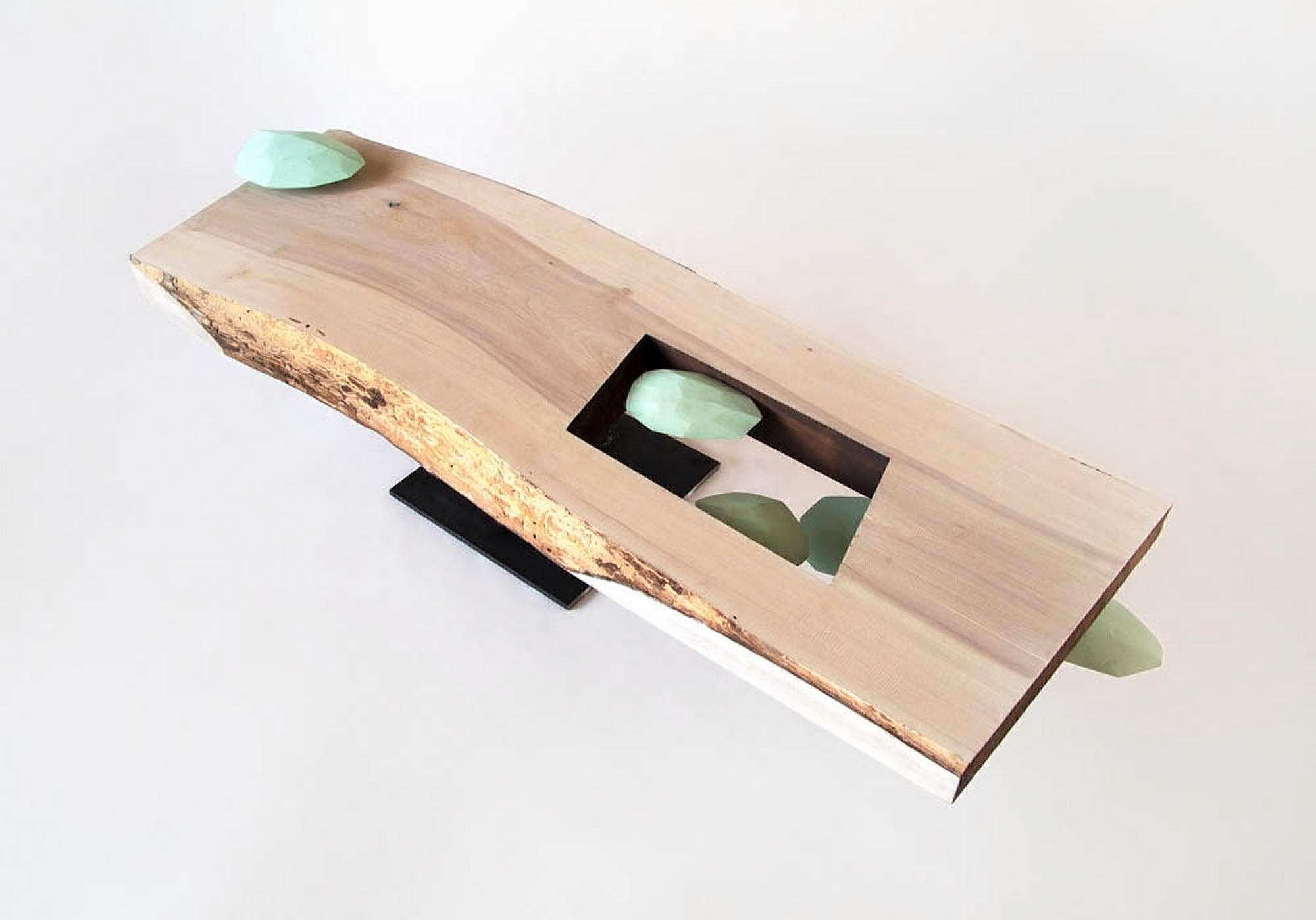 Acrylic and swarovski on wood (Cercidiphyllum japonicum)/Iron 41×180×55cm Collection of the artist Photo: kai Takihara