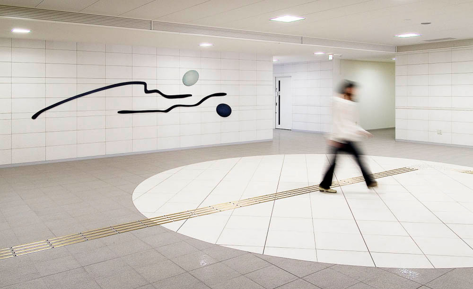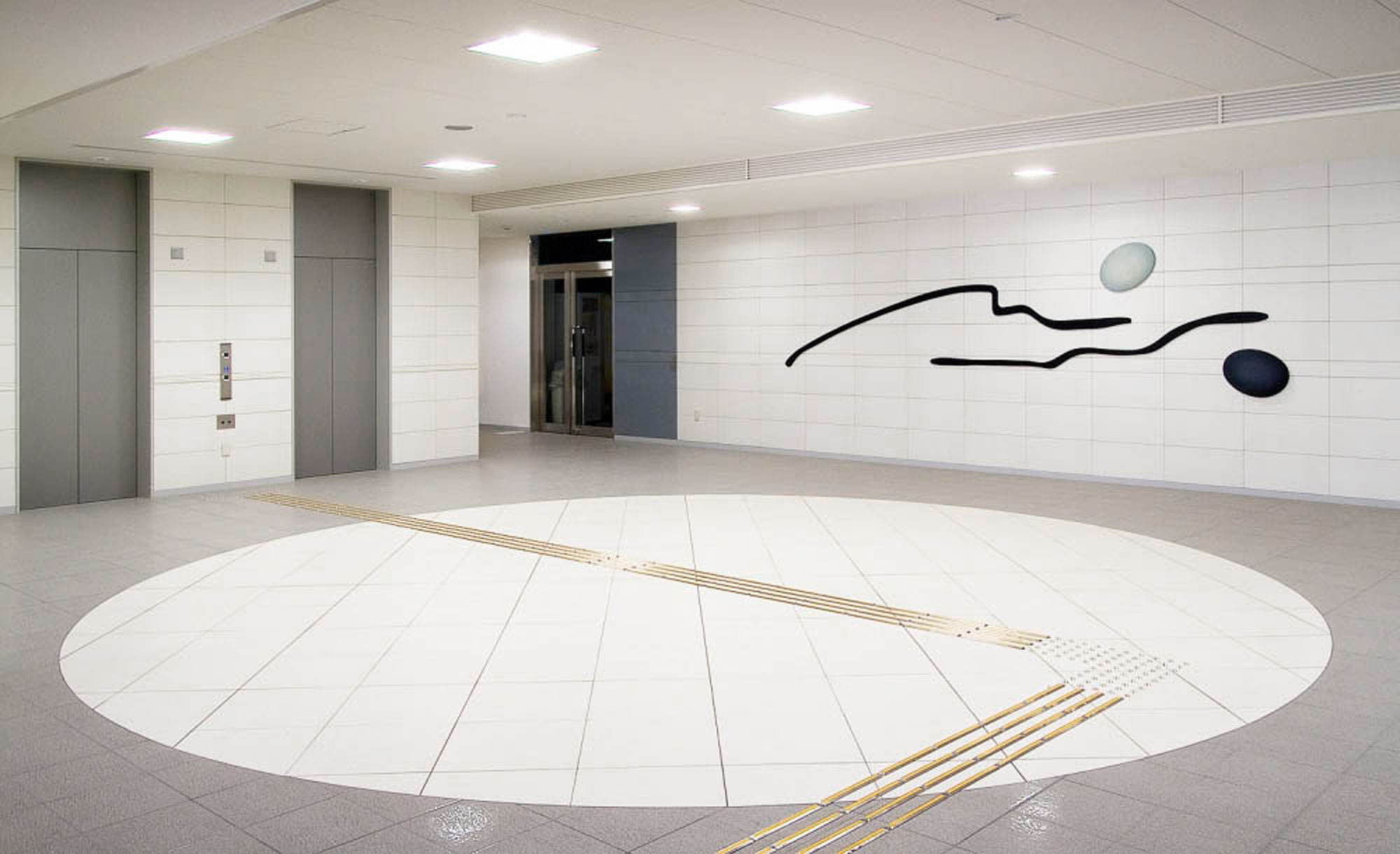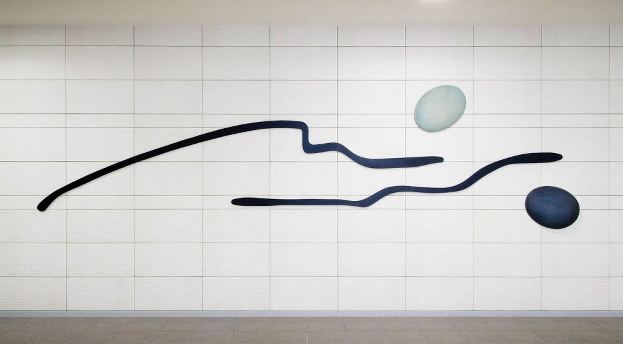 Acrylic on wood (Cercidiphyllum japonicum), Coloring on iron 120×480×6cm Muroran District Public Works Management Office Collection Photo: Kai Takihara