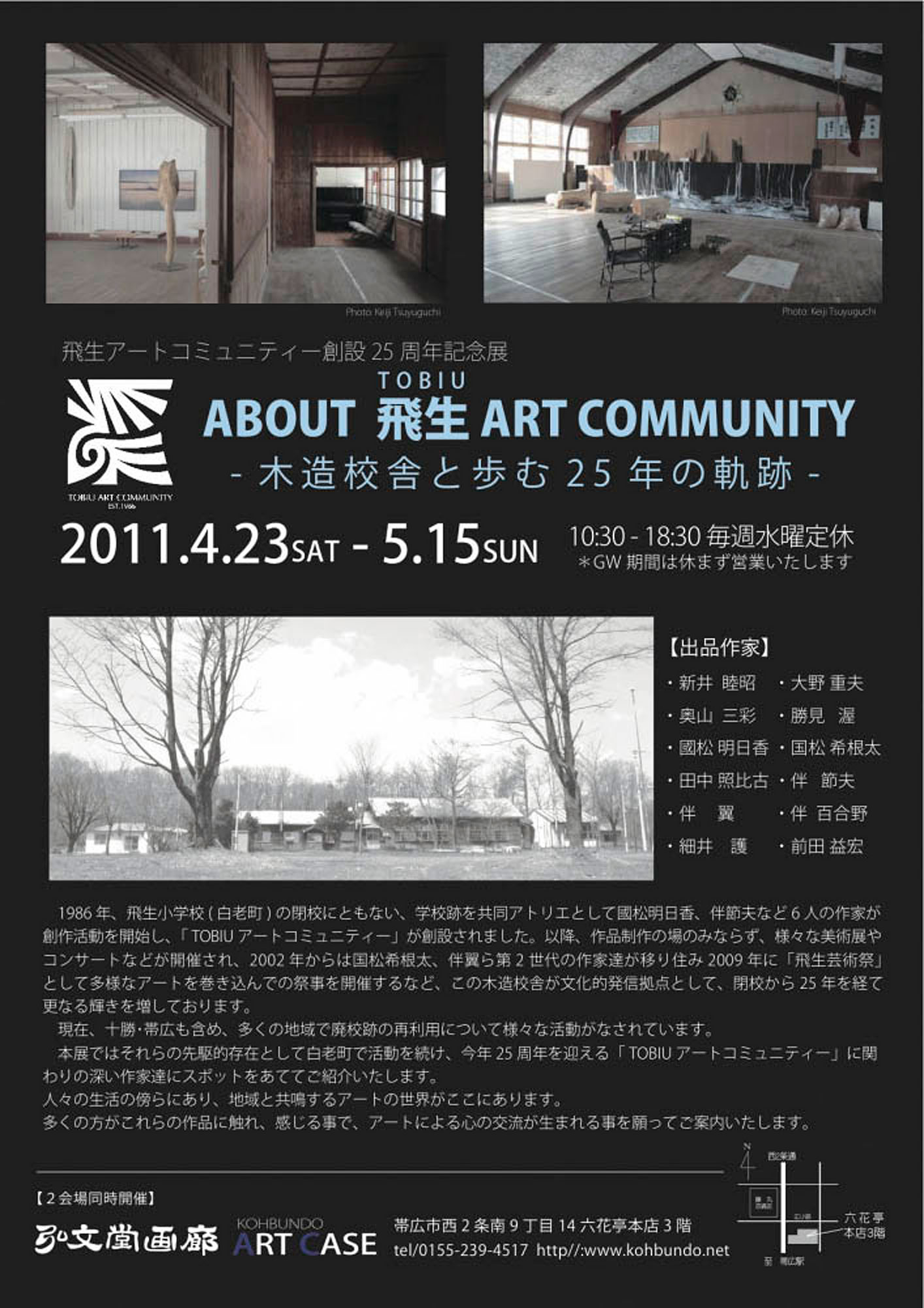 "ABOUT TOBIU ART COMMUNITY ー木造校舎と歩む25年の軌跡ー"(2011年4月23日-5月15日)