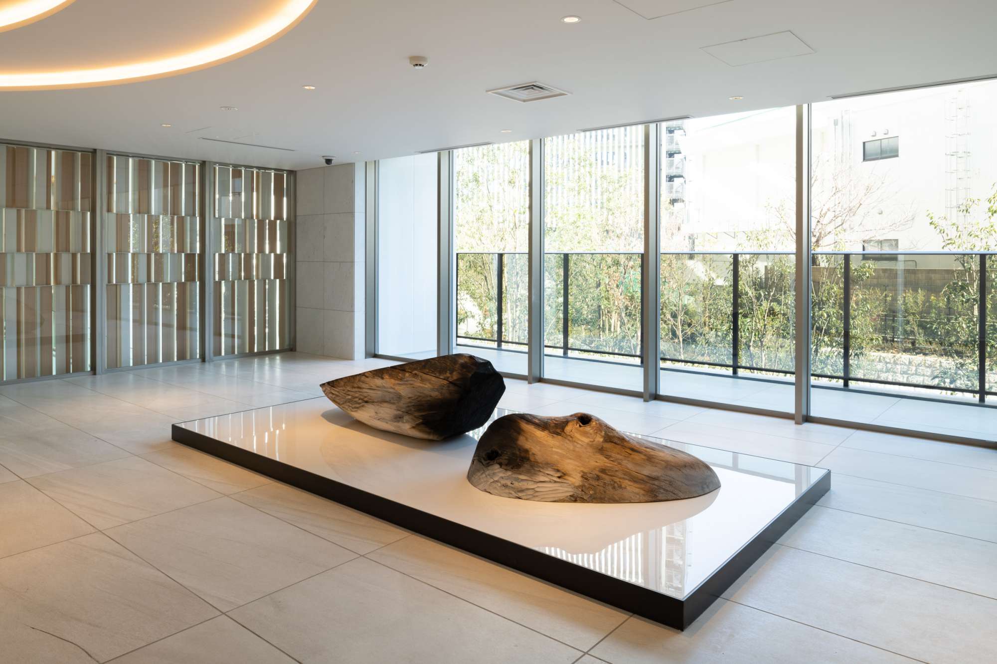 木(カツラ)に胡粉、カーボグラス® ポリッシュ/鉄 55×360×180cm THE COURT 神宮外苑蔵 撮影: 加藤 健